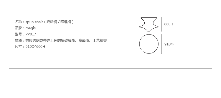 spun chair(旋转椅/陀螺椅)出自英国设计鬼才,同时也是 2010 年上海世博会英国馆的设计师,Thomas Heatherwick 的新作品;Spun Chair 发表于 2010 年米兰家具展,酷似陀螺的外型、又有如拉坏作品的独特样貌,让 Spun Chair 轻易抓取众人的目光,Thomas 的设计则是要让人乘坐其中,同时有着 360°可旋转的娱乐趣味,无论室内、室外,皆可自在玩味,带来截然不同的家具体验。新推出白色和灰色款,满足您更多个性选择!