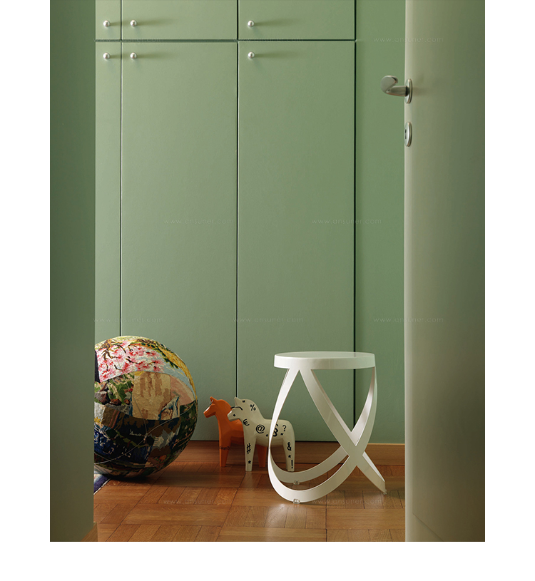 Ribbin Stool(丝带吧凳)由设计大师Oki Sato设计的。Ribbin Stool(丝带吧凳)是以薄型的钢板进行激光切割,精密的折叠工法让三条主结构有如丝带般飘逸交错。像是体操选手的彩带舞蹈,又像缠绕在芭蕾舞伶脚上的丝带,看似弱不禁风,实际坐上去才发现非常安定。绝美的镜面烤漆处理,作为房价里的小桌子也相当可爱。