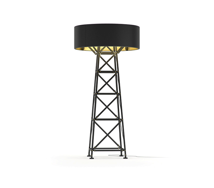 "The Construction lamps are inspired by metal factory construction,electricity poles and constructive elements. This collection, like other designs from Joost, originate from his inventiveness and curiosity combined with expert skills and industrial tools. He started playing with the tools and bolts present in his giant workshop and ended up constructing and creating a new, exciting design!Joost van Bleiswijk was born in Delft and graduated from Design Academy Eindhoven in 2011. Since then, he's mainly working on his own collections. In addition to his own work, Joost designs for top companies worldwide and his pieces have been featured in international publications. Joost's works and collections are exhibited and sold worldwide at galleries and museums.Construction lamps feature a die cast powder-coated aluminum frame in your choice of white or black. White lamps are offered with wood slats. The small size is offered with a push+hold dimmer while the medium & large sizes are offered with a slide dimmer. Includes 9.8 feet of black cord. Medium and large lamps have adjustable lamp holders. UL listed."