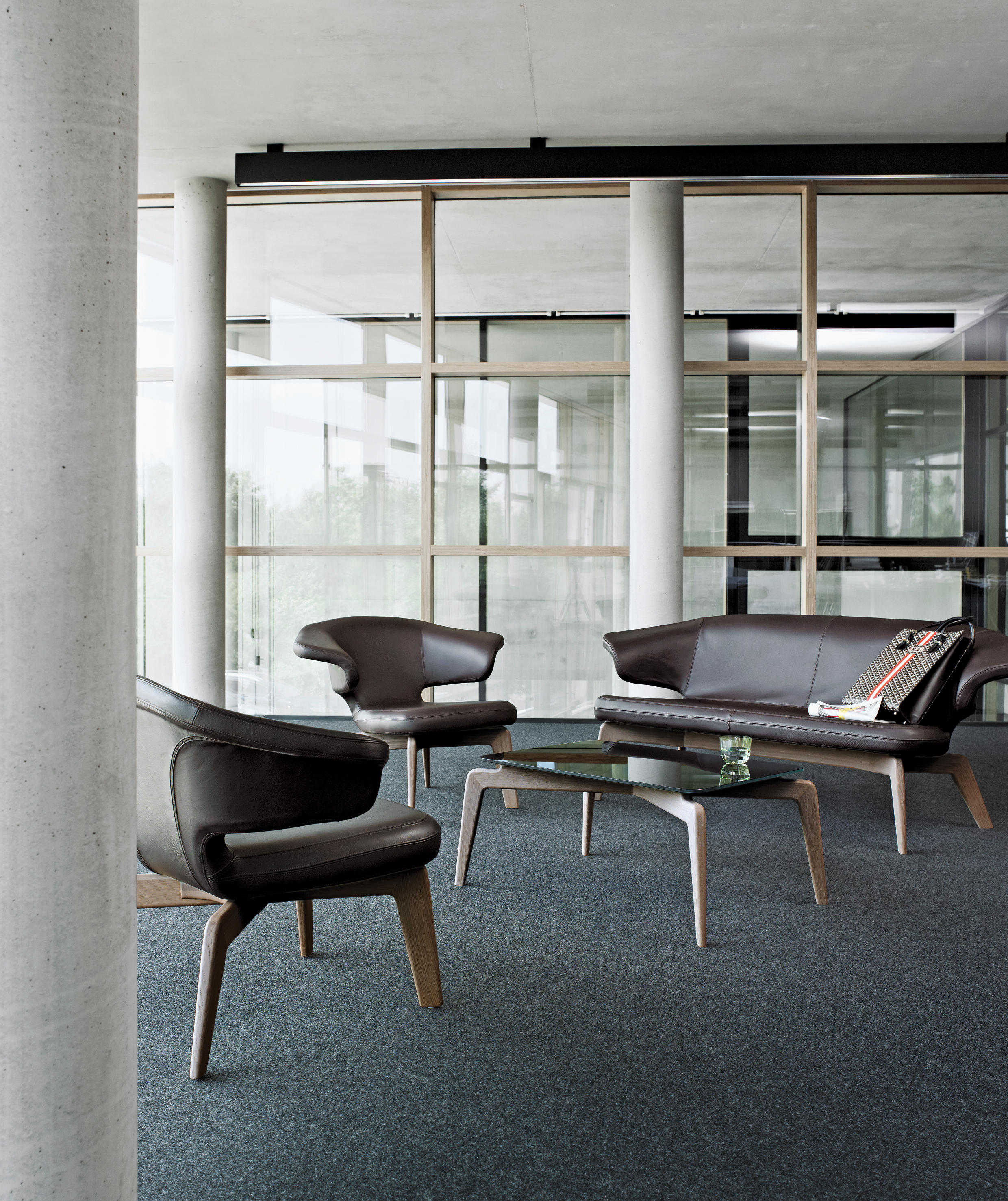 慕尼黑沙发具有实木框架,鲜明的涂漆或黑染色,钢管与框架橡胶织带。座垫填充聚氨酯与涤纶纤维,表层覆盖织物或皮革包裹。20 世纪和 21 世纪的现代艺术值得拥有这样的恰当的家具布置,同时也是现代化的家具与建筑。柏林建筑师Sauerbruch Hutton被要求设计德国慕尼黑的布兰德霍斯特博物馆(Brandhorst Museum)这令他很兴奋。2009年开馆时,他为食堂、 门厅、 会议和讲座室,以及休息室制定了三种不同的座位解决方案慕尼黑沙发就是其中的一种。ClassiCon 开发的系列生产与建筑师密切协作。同时要求在形式和质量方面的期望上,也要考虑到家具在公共空间中将会面临磨损。设计通过各种测试,确保了慕尼黑沙发的耐久性。