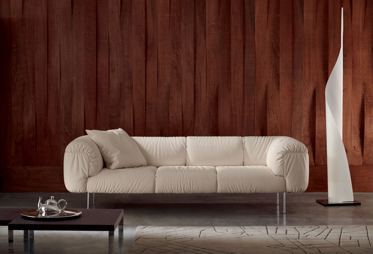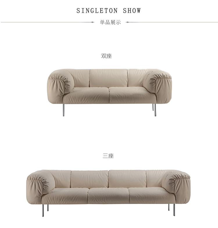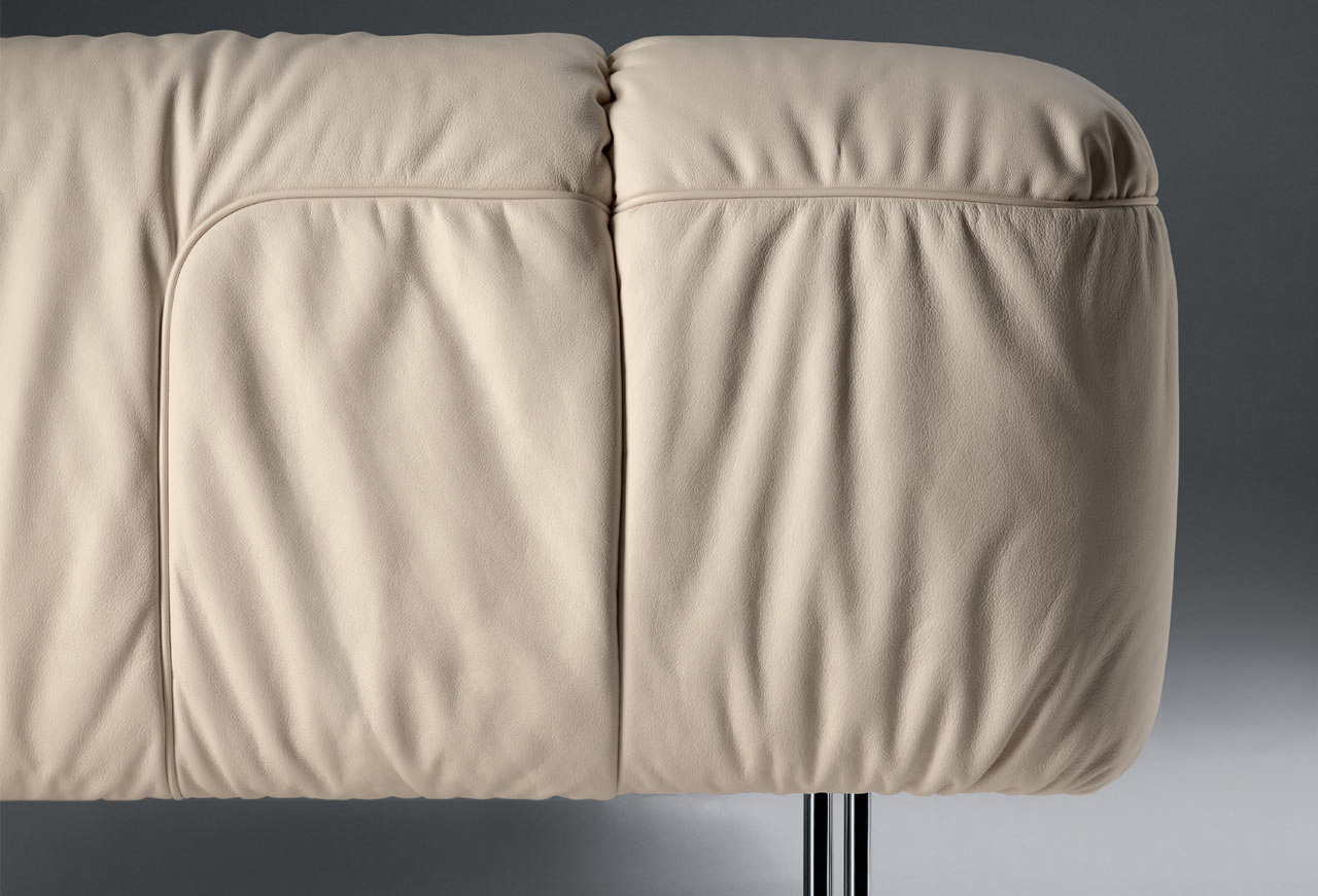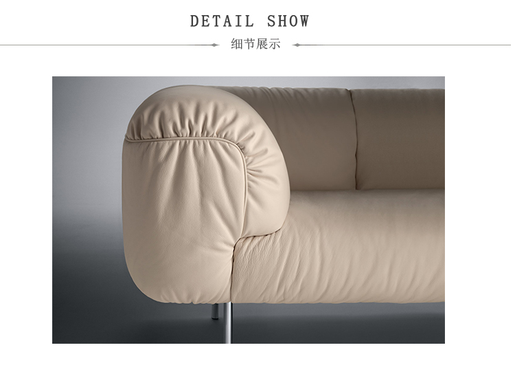 由意大利设计师Cini Boeri为当地家具品牌Poltrona Frau设计的软沙发Bebop,有两座及三座:Bebop 2-seater Sofa(比波普双座沙发)、Bebop 3-seater Sofa(比波普三座沙发),简洁圆润的设计线形,天鹅绒般柔软的舒适坐垫,底座和靠背框架采用山毛榉木,扶手则为白杨木,再覆以Pelle Frau皮革,沙发腿为镀铬钢管,看上去简洁高贵,优雅低调,关键是放在哪个环境下都不突兀,速配率超高。