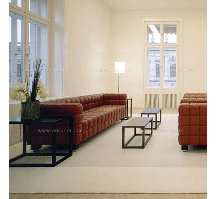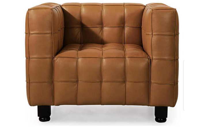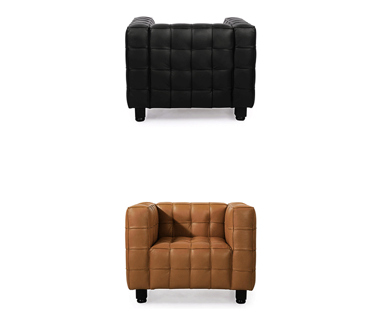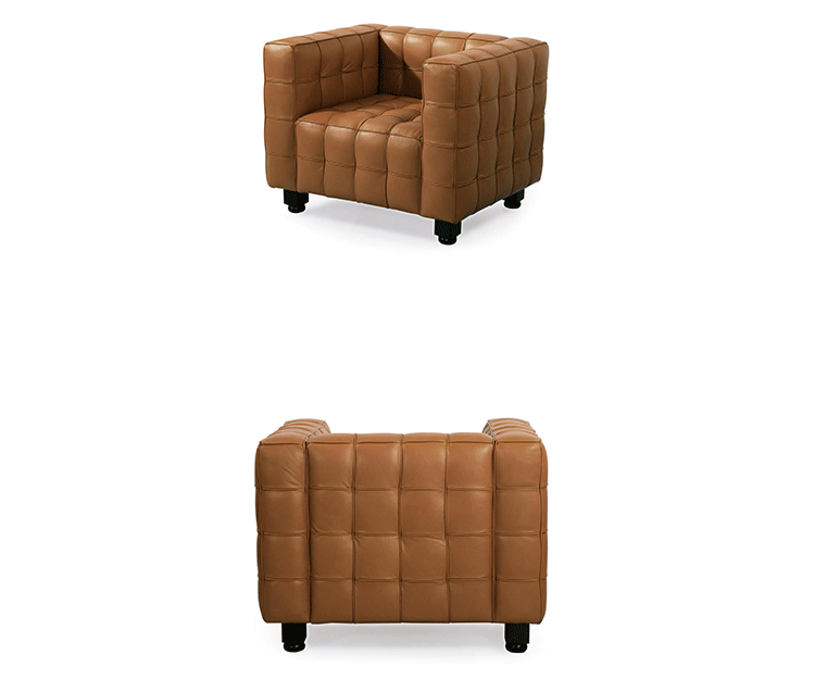 This high quality reproduction of the Josef Hoffmann Kubus Chair features a handcrafted hardwood frame graciously lined with polyurethane foam. The surface is luxuriously soft to the touch,compliments of its premium 100% Top-Grain Aniline leather upholstery. This premium reproduction is generously proportioned to original full-scale size and cube count.Precision stitched & aniline leather piped tactile cubes create a thick body of cushioning that is so comfortable you’ll understand why this sofa has been a modern classic for nearly a century.For those looking for historic significance in midcentury modern furnishings,the Hoffman Kubus is a certain candidate.