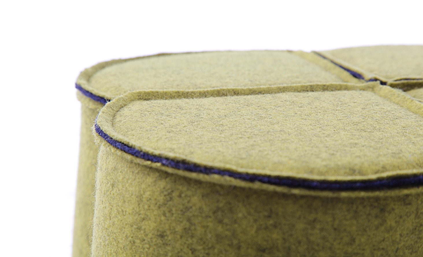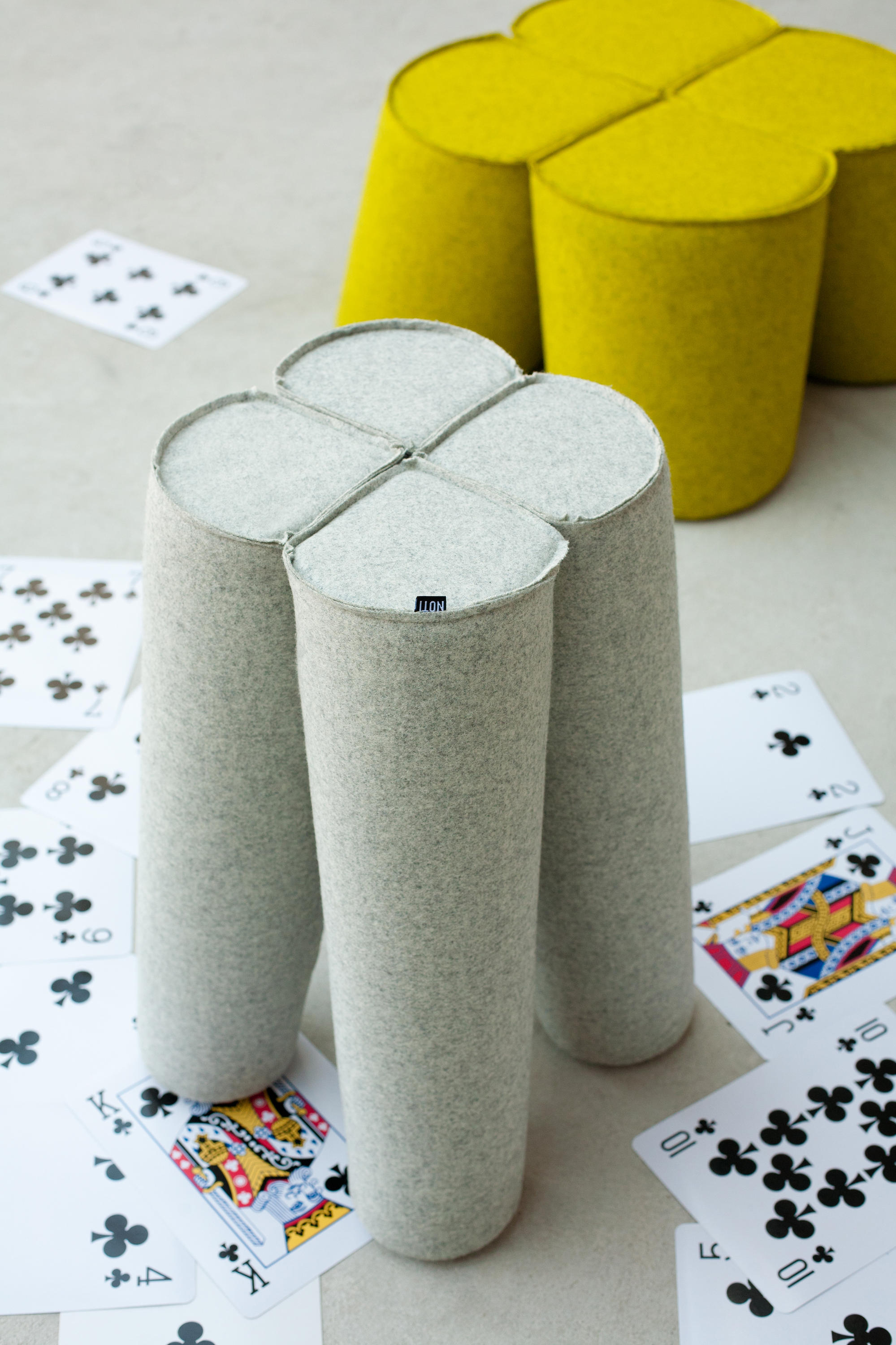 三叶草是对受欢迎的凳子的独特诠释。它的特点和奇特的形状让人想起四叶苜蓿……给人带来好运。该系列包括三种不同尺寸的座椅:袋、凳和杆凳。此外,当你在上面放一个单独的桌面时,凳子可以用作桌子。有不同的缝制成品可供选择:标准缝、右缝和右缝,外加任何颜色的附加镶嵌。
