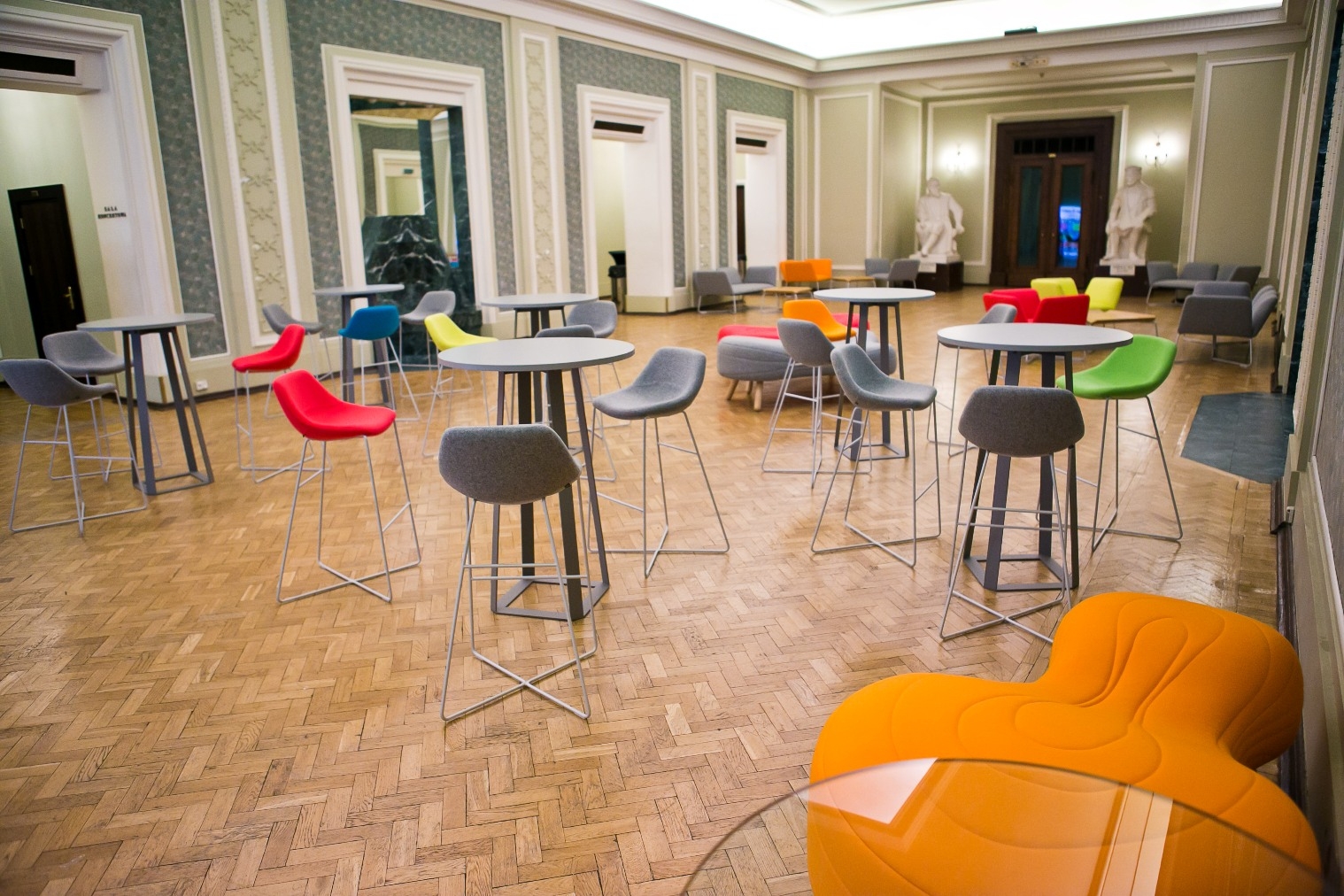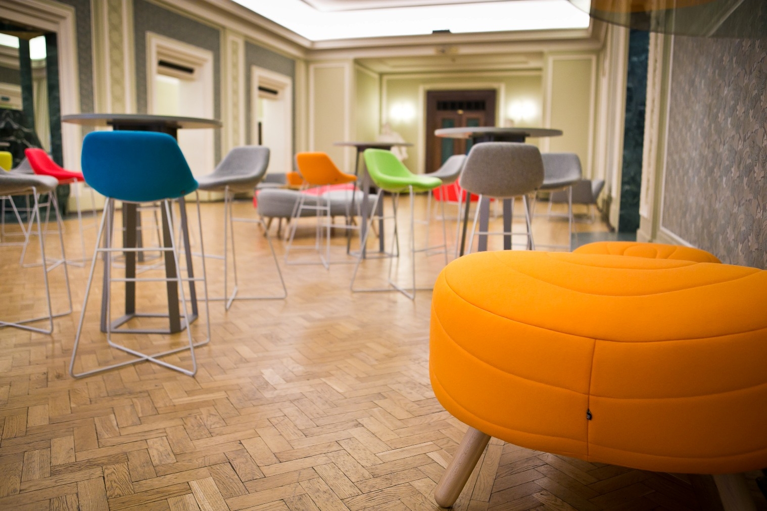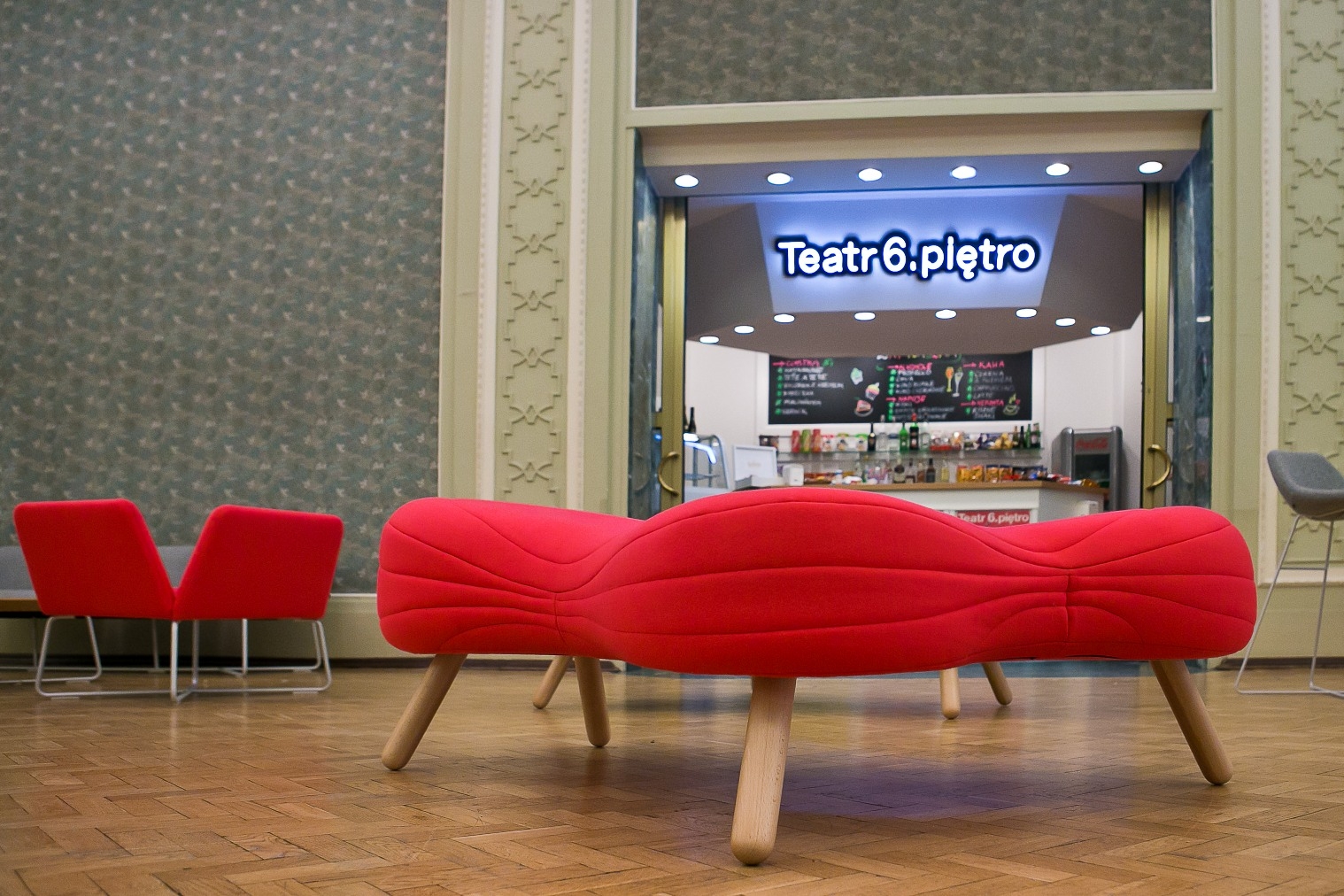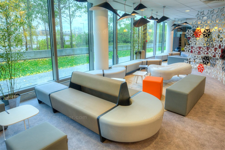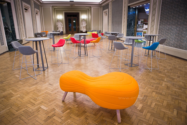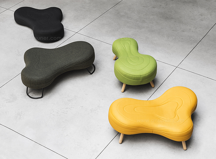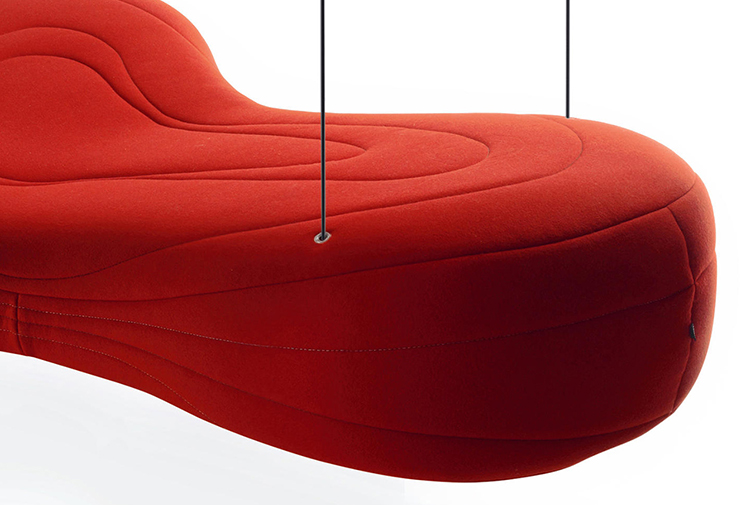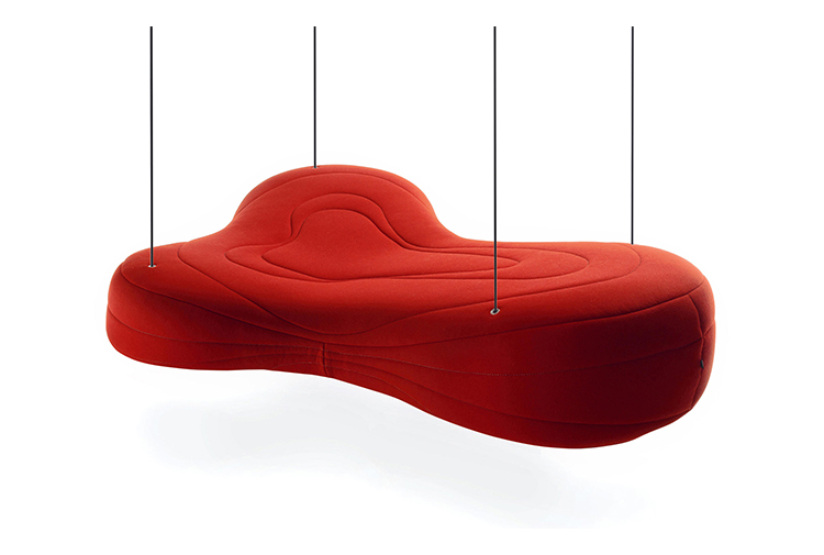 不规则的、变形的沙发形式允许创造一个不寻常的公共空间。这些模块是用木制的腿,小的隐藏的腿,这样沙发看起来就像是直接躺在地上,或者悬挂在绳子上,给人一种漂浮在空中的感觉。设计的主要特点是有可能在功能和外观方面提供不同的基础。这些座椅有两人位和三人位型号可供选择。