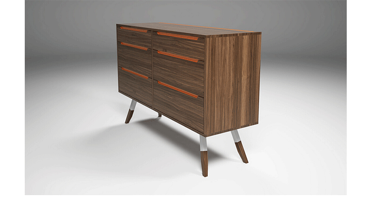 nills dresser(米尔斯梳妆台)能够很好的组织你的衣物,平滑抽屉够大够深,再多的衣物也能很好的存放。制作采用精选MDF板基材、进口美洲胡桃木皮贴面、实木脚架、彩色装饰边、五金拉手、环保净味油漆喷涂、做工精湛。