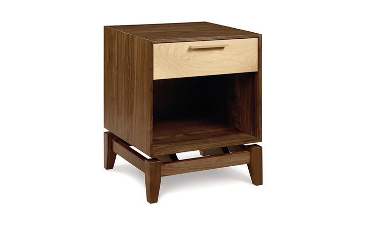 copeland soho 1 Drawer nightstand(科普兰soho一抽床头柜)是Copeland Furniture公司copeland实木系列之一。我们塑造环境,然后环境塑造我们,copeland旨在传递的舒适度和清晰度的感情。设计借用了一些最优秀的传统和当代的设计要素,非常具有特色。这个中世纪现代风格的设计,提供了一个抽屉存储空间,可以使您更好的归纳自己的物品。制作采用精选MDF板基材、进口美洲胡桃木,贴面、实木脚架、彩色装饰边、环保净味油漆喷涂、做工精湛。
