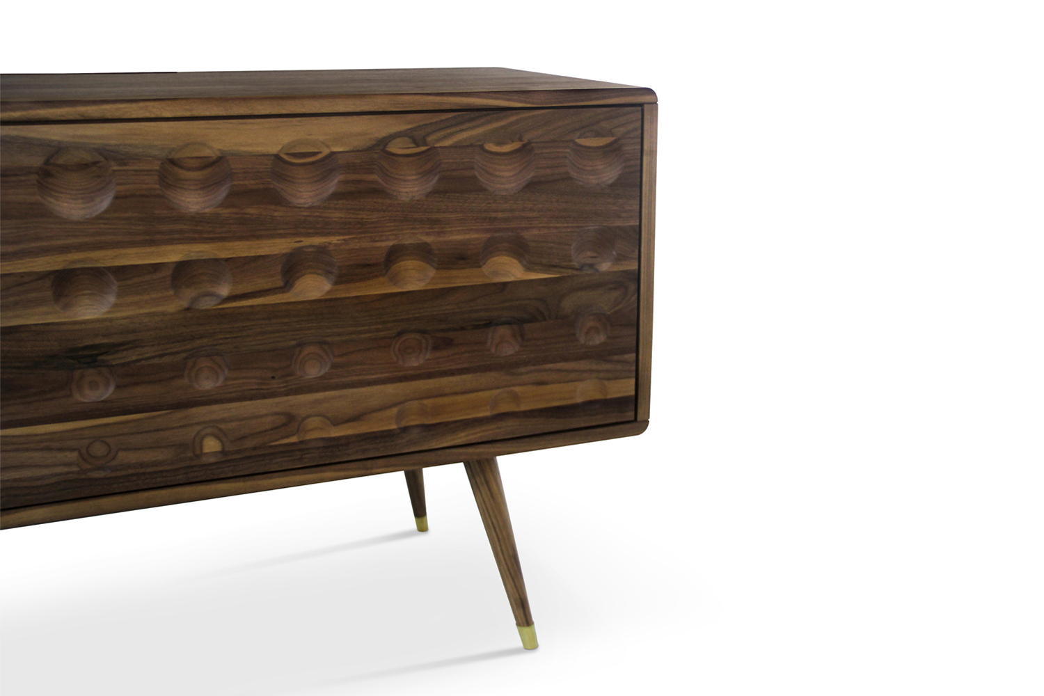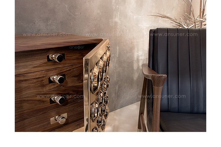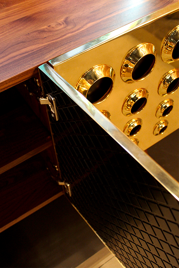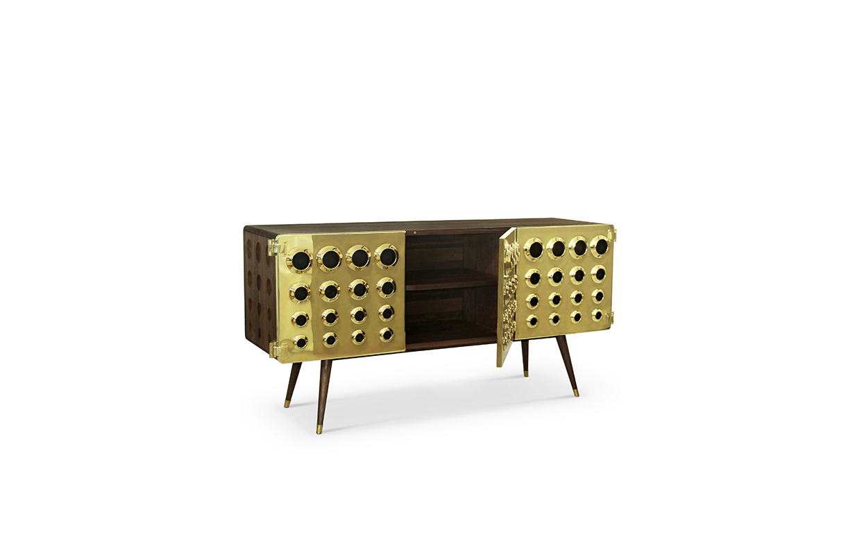 Monocles是侧板完全建立了坚实的胡桃木,重音的镀金黄铜大门,特征突出的圆形设计。这些圆圈,然后刻在单位的背面和侧面,给它一个极端的字符和高端的外观。这是上世纪中期复古爱好者或崇拜者完美的家具,使滚花旋钮在抽屉或锥形腿。