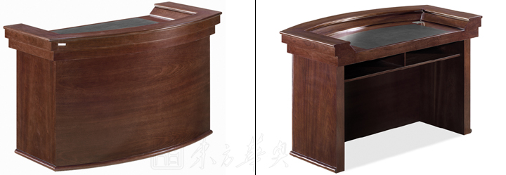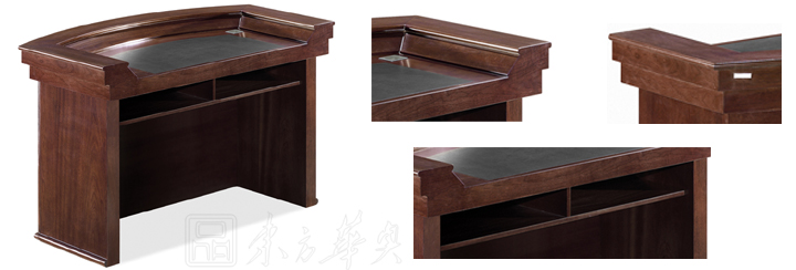 ※ 上图为演讲台细节展示图,可选配话筒等配件,优美的弧形主体,木质油漆结构,进口油漆,国内首创内增加纳米银抗菌材料。