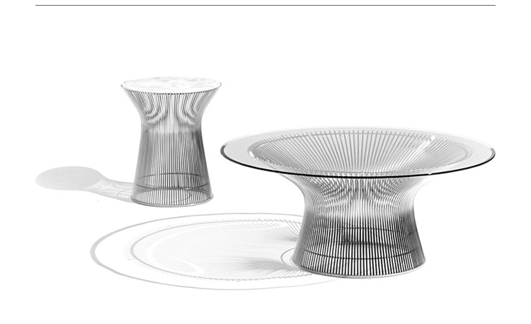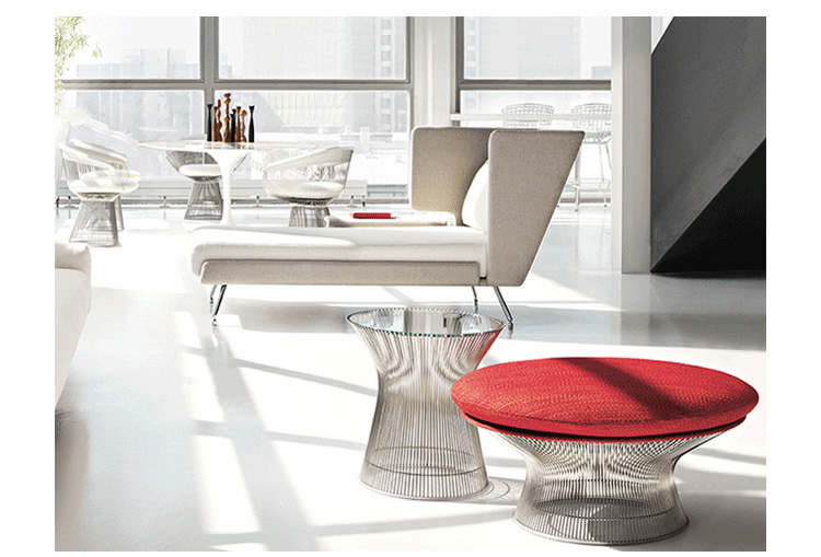 1966年榮獲 American Institute of Architects International Award 美國建築協會國際大獎的 Platner Chair,在設計師 Warren Platner 的創意下,將鋼絲雕塑轉化成一系列收藏級的傢俱,創造了現在被認為是當今時代的設計圖標。