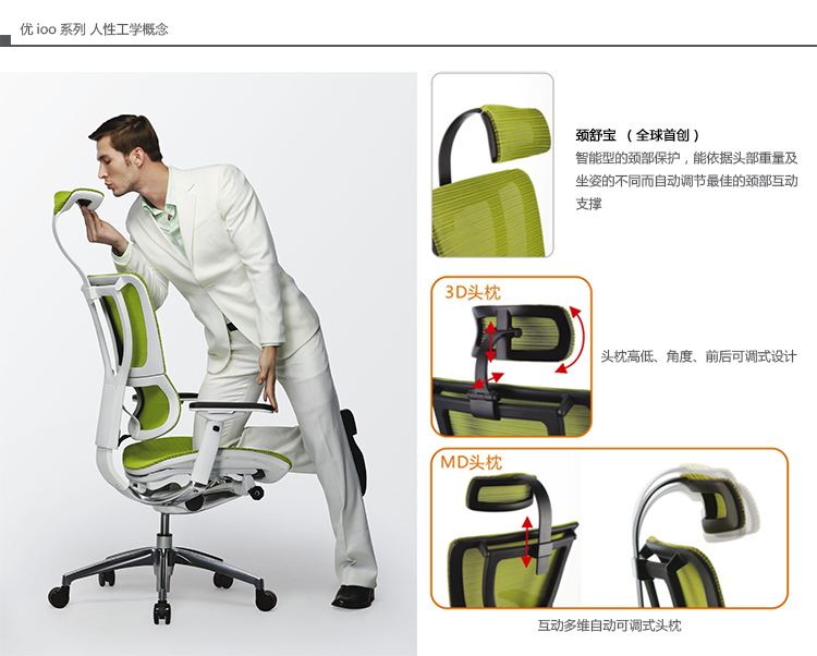 全球首创的单杆式操控底盘,一根杆操控所有功能,使办公椅的操控更加人性化;